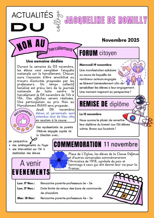 Le Collège Jacqueline de Romilly vous souhaite une agreable visite